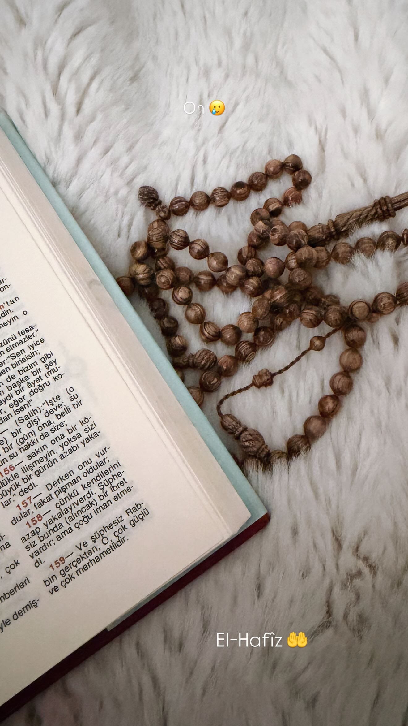Subaşı bu paylaşımının ardından dikkat çeken bir paylaşım yaptı. Subaşı, ilk açıklamasının ardından Kuran ve tespit fotoğrafı paylaşıp, “Oh (Gözü yaşlı emoji) El-Hafız” yazdı.