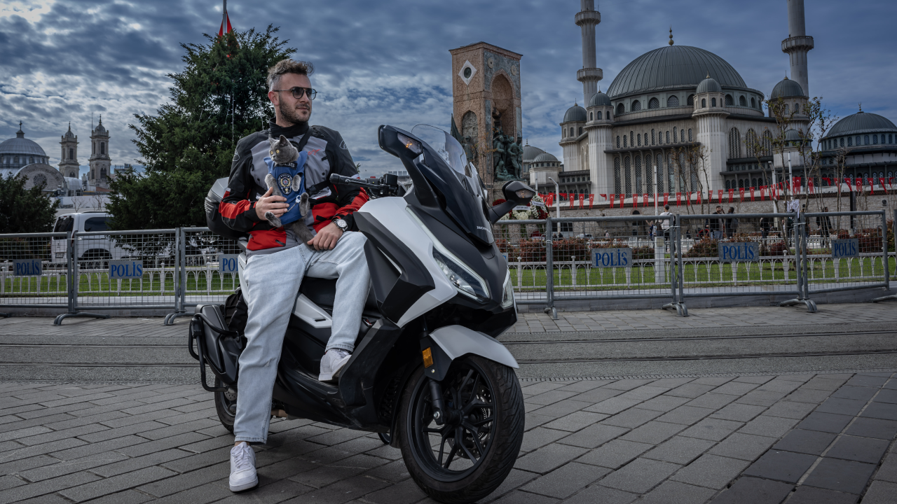 İlk önce uçakla İstanbul’a gelen ikili, Garipçe, Üsküdar, Eminönü, Sirkeci ve Taksim’de motosikletle dolaştı. Gittiği her noktada turistlerin ilgisini çeken kedi, kimi zaman da çocukların oyun arkadaşı oldu.