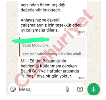 Cumhuriyet’te yer alan habere göre, mesajda, bu tür etkinliklerin Millî Eğitim Bakanlığı müfredatında yer almadığı vurgulandı.