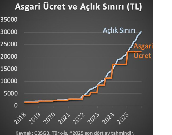 Kara’nın açıklamasına göre, 2025 yılı sonunda asgari ücret, açlık sınırının yüzde 36 altında kalacak. Bu durum, milyonlarca asgari ücretli için ciddi bir gelir kaybına işaret ediyor.